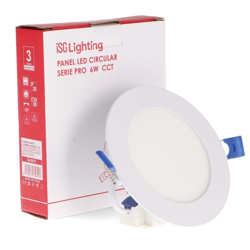 Foco LED de Encastrar 6W CCT da iSG Lighting – Série PRO, ideal para tetos falsos em habitações, lojas, escritórios e remodelações. Com tecnologia CCT, permite ajustar a temperatura de cor (quente, neutra ou fria) através do seletor integrado, garantindo a luz adequada para cada ambiente.
